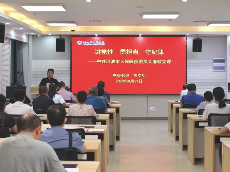 为深入推进清廉医院建设,8月31日,河池市人民医院在教学综合楼5楼教室开展廉政微党课宣讲活动,医院党委书记韦义甜为行政党支部全体党员上了一堂生动精彩的廉政教育专题党课。