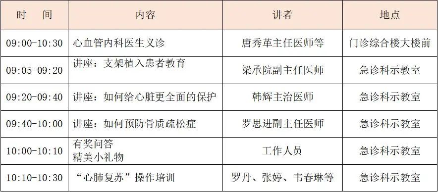 9月29日是“世界心脏日”,为了提高大众对常见心脏疾病及心脏急救知识、骨质疏松症的关注度,河池市人民医院心血管内科和老年专科护理小组将举办全民大讲堂科普和义诊活动,欢迎广大市民朋友到场参加!