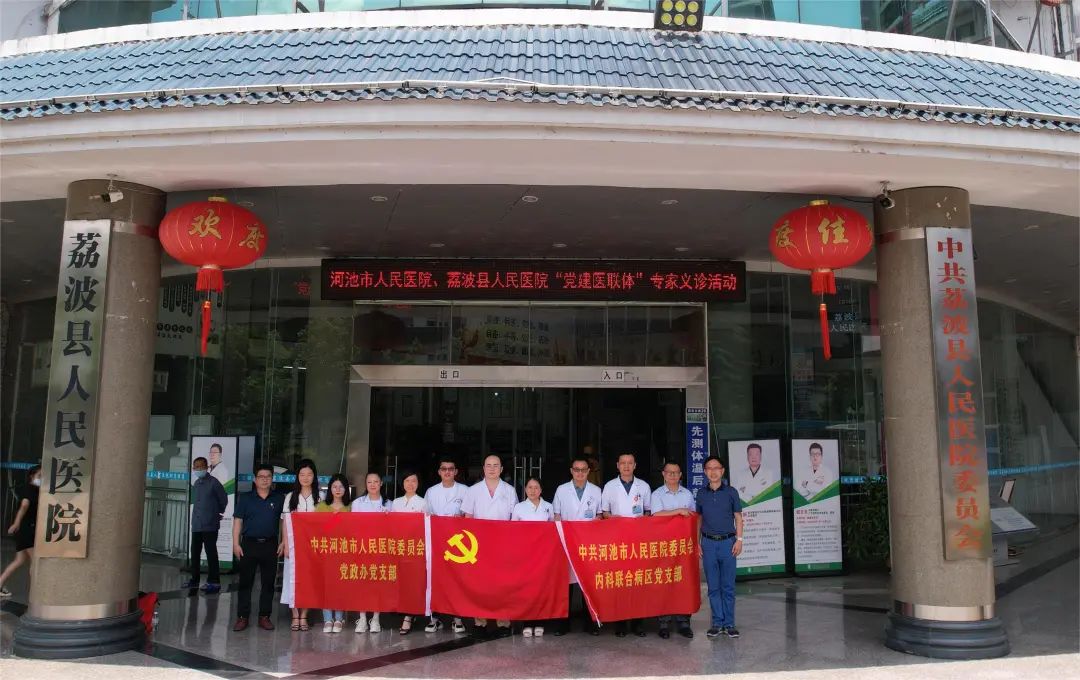 为推动党建引领区域医疗健康优质资源优化整合、高效利用,7月7日,河池市人民医院党委书记韦义甜、副院长余乐周率党政办党支部党员及心血管内科、呼吸与危重症医学科、内分泌科、胃肠外科、眼科专家前往贵州荔波县人民医院开展党建医联体主题党日活动。