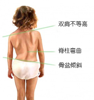 5.一侧髋部比另一侧要高得多,家长可先对其进行简单的检查,比如摸一摸脊柱的棘突,看看是不是在一条直线上,或者让其立正站好后向前弯腰,注意观察后背是否对称。