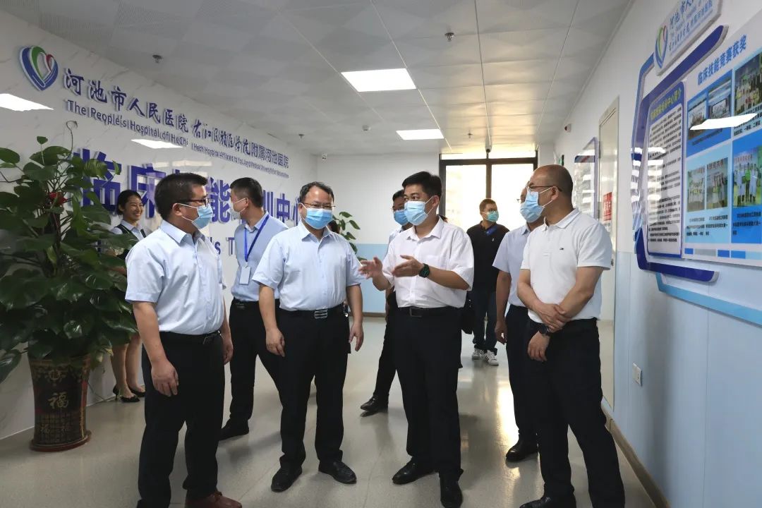 7月26-27日,“科技列车河池行”走进河池市人民医院。国家卫生健康委科教司副司长黄龙坚在河池市人民政府副市长曹崇俊、自治区卫生健康委科教处处长王盛等领导陪同下率队到我院开展科技创新工作调研。来自中国医学科学院北京协和医学院群医学及公共卫生学院冯录召副院长、中山大学附属第一医院妇科刘军秀副主任、重庆医科大学附属第二医院心血管内科凌智瑜副主任和生殖医学科邹姮副教授、广西壮族自治区人民医院肝胆外科主任医师陈元元到我院传经送宝,指导医院建设发展。