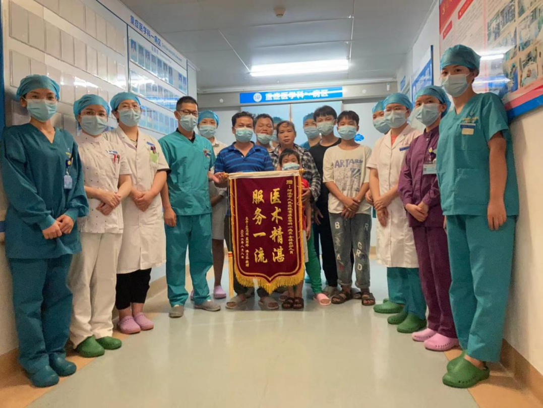 患者入院当天,重症医学科副主任韦普成召集科室技术骨干进行讨论,并申请多学科会诊,根据患者病情制定一系列个体化的治疗方案。在护肾、护胃、保肝治疗的基础上,予以洗胃、灌肠、导泄、补液水化利尿促进毒物排除,并积极进行血液净化技术(血液灌流)吸附血液中的毒素。经上述综合救治后,蓝氏夫妇及其弟弟由意识障碍转为清醒,病情逐渐稳定,劫后余生,脸上也露出了久违的笑容。