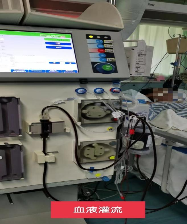 医务人员进行血液净化技术(血液灌流)吸附患者血液中的毒素
