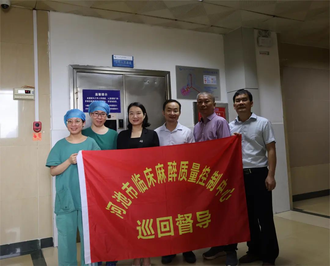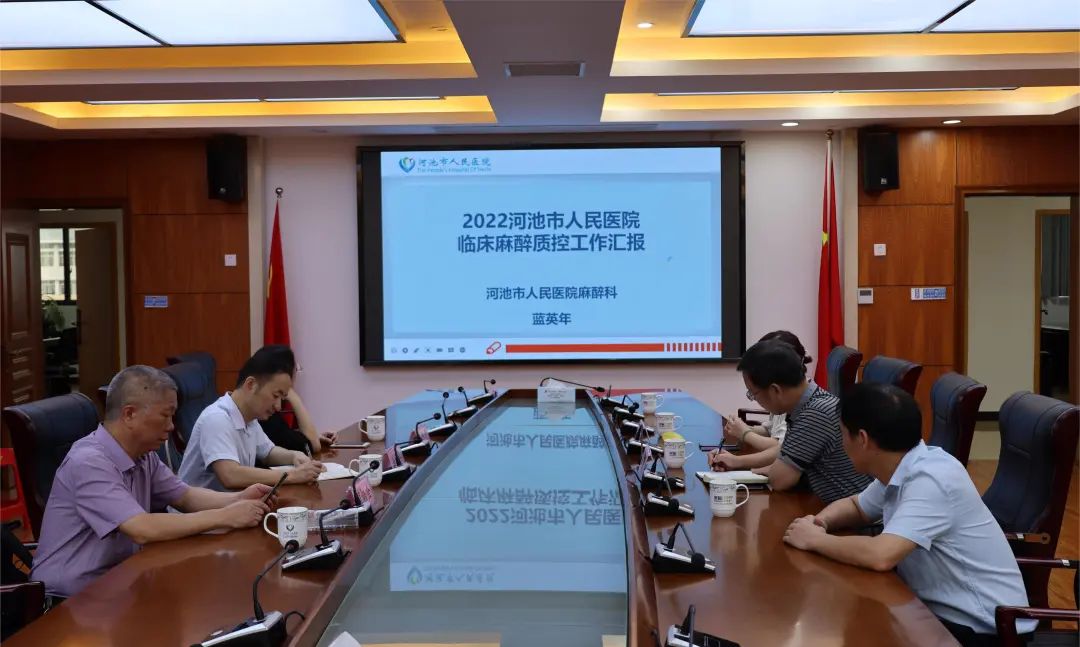 6月22日,河池市临床麻醉质量控制中心专家组莅临河池市人民医院麻醉科进行麻醉质控联合检查工作,专家组由河池市妇幼保健院副院长、河池市麻醉质量控制中心副主任委员关开华主任医师,河池市第三人民医院麻醉科韦珊珊主任、河池市中医院麻醉科程炳全主任一行3人组成,河池市人民医院麻醉科主任蓝英年及其他科室负责人陪同检查。