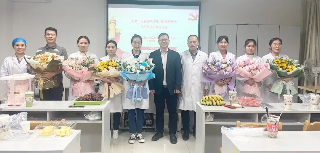 党委委员黄明棣与消化内科抗疫医护人员合影