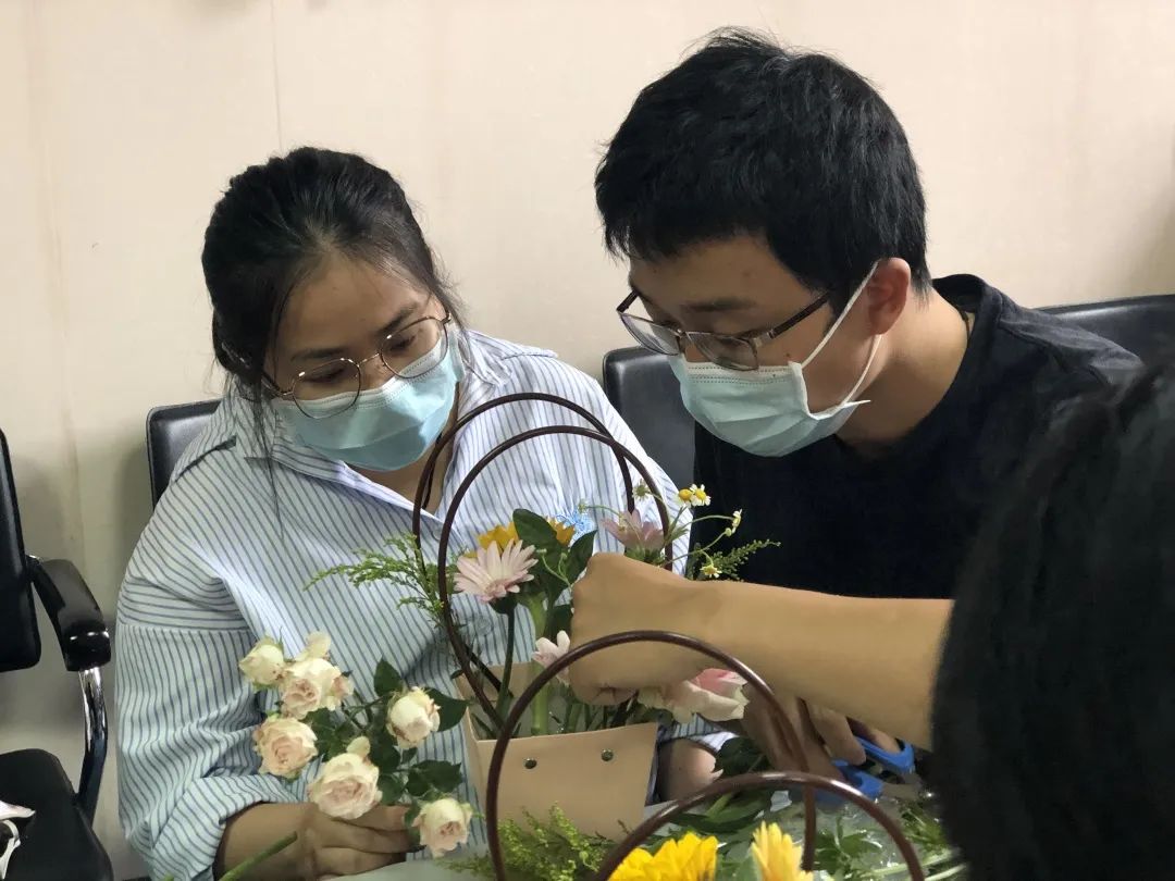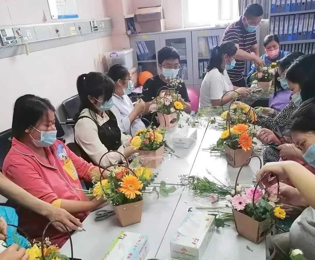 随后,浪漫而又温馨的插花环节将活动推上了高潮。在花艺老师的指导下,孕妈妈们自由发挥,花语胎教,陶冶情操,促进胎儿健康发育。现场欢声笑语、其乐融融、花香四溢,孕妈妈们用心体验孕期生活,一双双巧手,对花枝进行整理、修剪、插花,成功创作出一篮篮错落有致、造型各异的作品,以美好的心情编织美好的梦想,亲手给自己制作了一份特别的母亲节礼物。