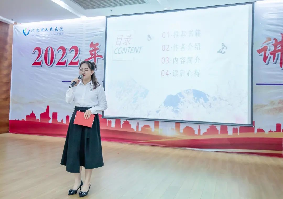 为了全面提高医院职工的阅读意识,推进“书香河医”建设,全面提升全院职工人文素养,5月19日,河池市人民医院在门诊综合楼23楼多功能厅举办读书分享演讲比赛,院领导班子、全院中层干部、各读书小组组长、各工会小组长等参会。