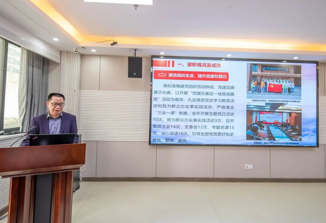 在认真听取报告后,韦义甜书记依次对各党支部书记的述职作出点评,要求各支部书记要围绕本支部工作存在的问题,特别是自己履行第一责任人职责方面的不足和差距,把工作着力点和落脚点放在抓整改落实上,将整改措施列入2022年党建工作计划、列入组织生活会的整改,抓好落实。