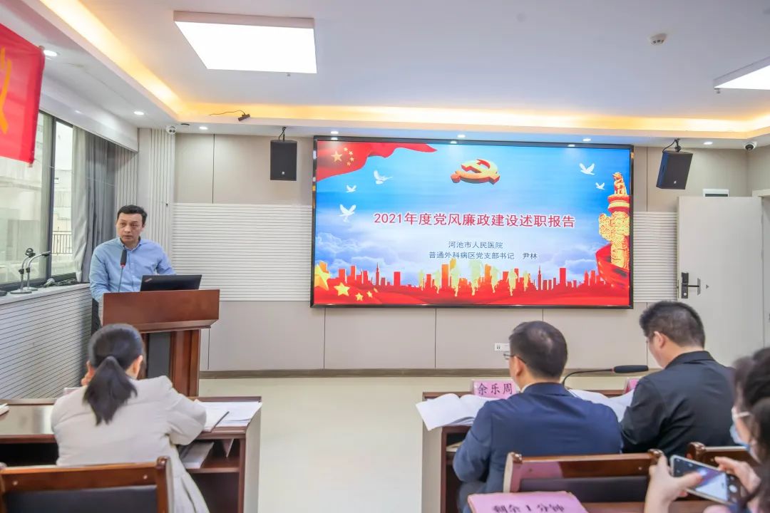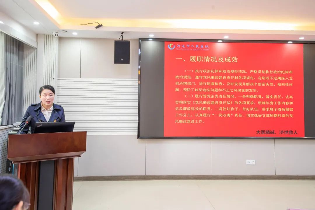 述职会上,财务科党支部、总务科党支部、肾内科党支部、儿科病区党支部、感染性疾病科党支部、医技联合科室第二党支部书记依次以PPT形式对抓基层党建工作进行述职,行政联合科室第三党支部、住培轮转人员党支部、妇产生殖党支部、普通外科党支部、外科联合病区第二党支部、外科联合病区第三党支部书记依次以PPT形式对推动落实党风廉政建设主体责任进行述责述廉,全面阐述了支部在2021年党建工作和党风廉政建设工作中的亮点与不足,剖析原因,并提出了下一步的工作思路和改进举措。