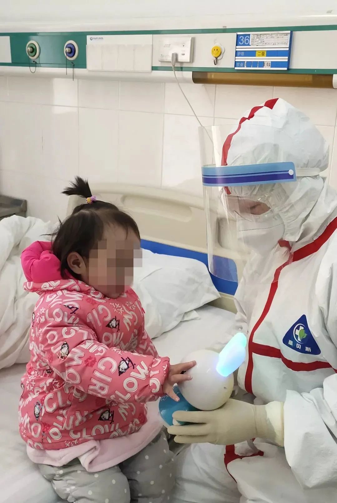 图为医务人员在护理全国首例年龄最小患者
