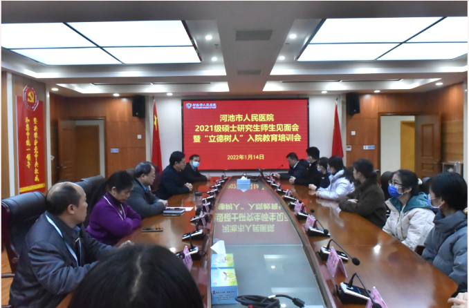 1月14日,河池市人民医院在教学综合楼5楼举行2021级硕士研究生师生见面会。