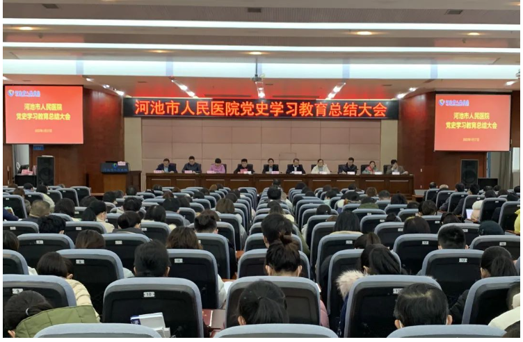 河池市人民医院党委书记韦义甜同志传达了中央、自治区、市委、市卫生健康党工委党史学习教育总结会上的讲话精神,并从三个方面对医院党史学习教育的主要做法和成效作总结。他指出,医院党委紧紧围绕“学党史、悟思想、办实事、开新局”的总要求,以抓住三个“节点”、用好三种“学习”、聚焦三个“核心”为抓手,全面协同推进党史学习教育走深走实,取得显著成效。2021年,医院共获得20项集体表彰,36人次个人表彰,其中,国家级5项,自治区级24项,市级27项。党建医联体建设工作经验获《河池改革简报》专题刊发,并得到人民网总网推广报道;医院申请设置的“一院两区”通过自治区现场核验。