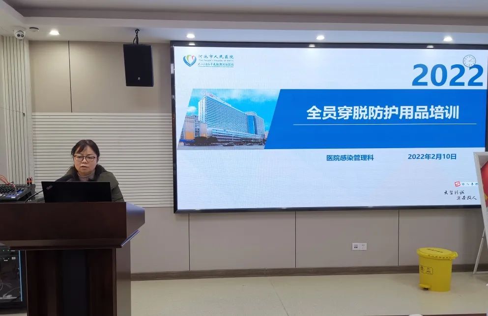 当前,新冠肺炎疫情防控形式依然严峻。为进一步提高全体医护人员的疫情防控意识和应急处置能力,确保自身防护及患者医疗安全,近日,河池市人民医院组织各科室院感管理骨干、部分行政职能科室人员及全体工勤人员开展正确穿脱防护用品的培训及现场考核,共300余人参加了参训。