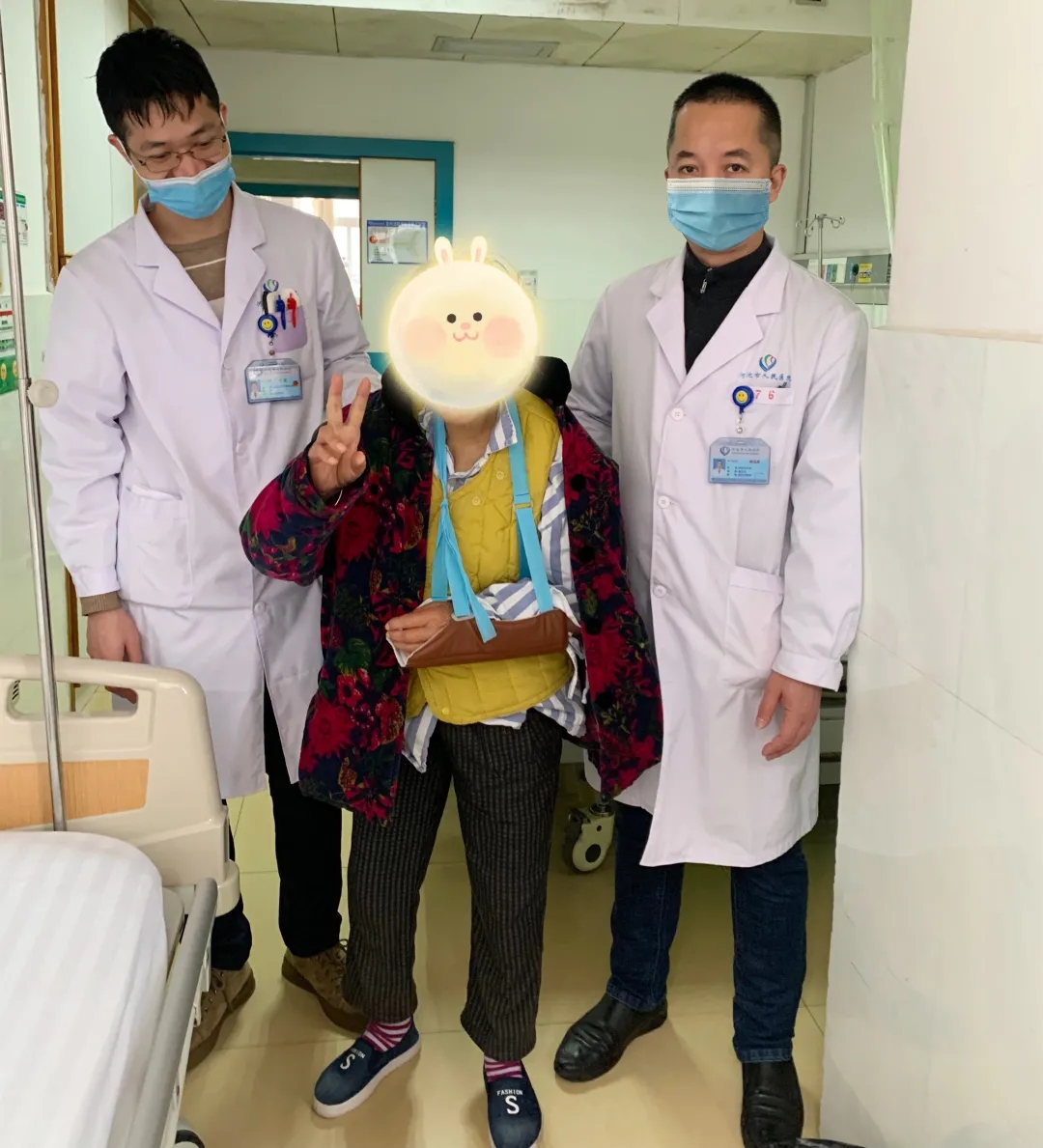 唐奶奶与医务人员合影