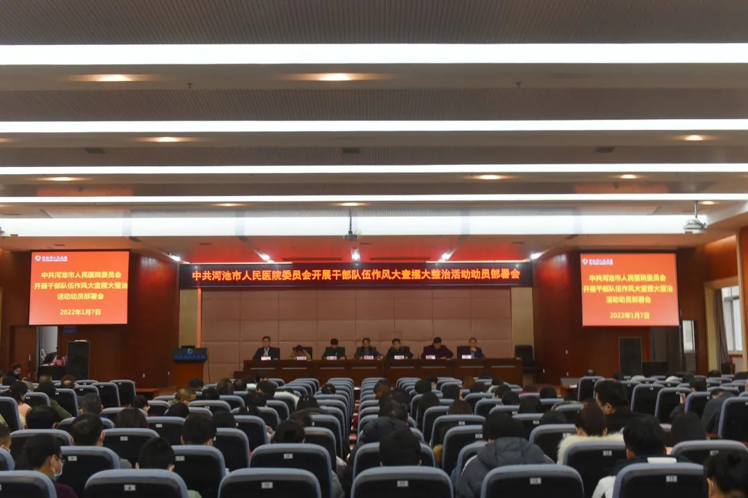 1 月7 日,河池市人民医院在门诊综合楼23楼多功能会议室召开干部队伍作风大查摆大整治活动动员部署会。医院党政领导班子、全院中层干部等300余人参加会议。会议由纪委书记韦文正主持。
