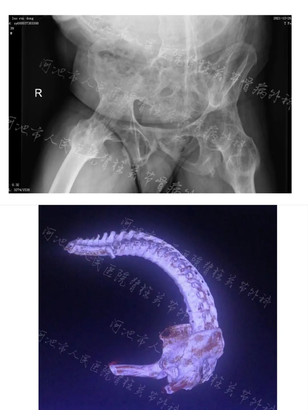 术前影像学检查结果提示:强直性脊柱炎,累及双髋关节