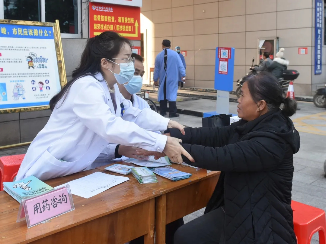 通过义诊、播放宣传视频、发放宣传资料及义诊的方式, 医院呼吸内科、重症医学科及药学专家现场为患者和群众答疑解惑,宣传抗微生物药的使用相关知识,提供正确、合理使用的建议,指导群众合理用药。活动现场为群众提供免费测量血压、发放大量的用药宣传资料,向广大群众大力宣传抗微生物药合理用药知识。