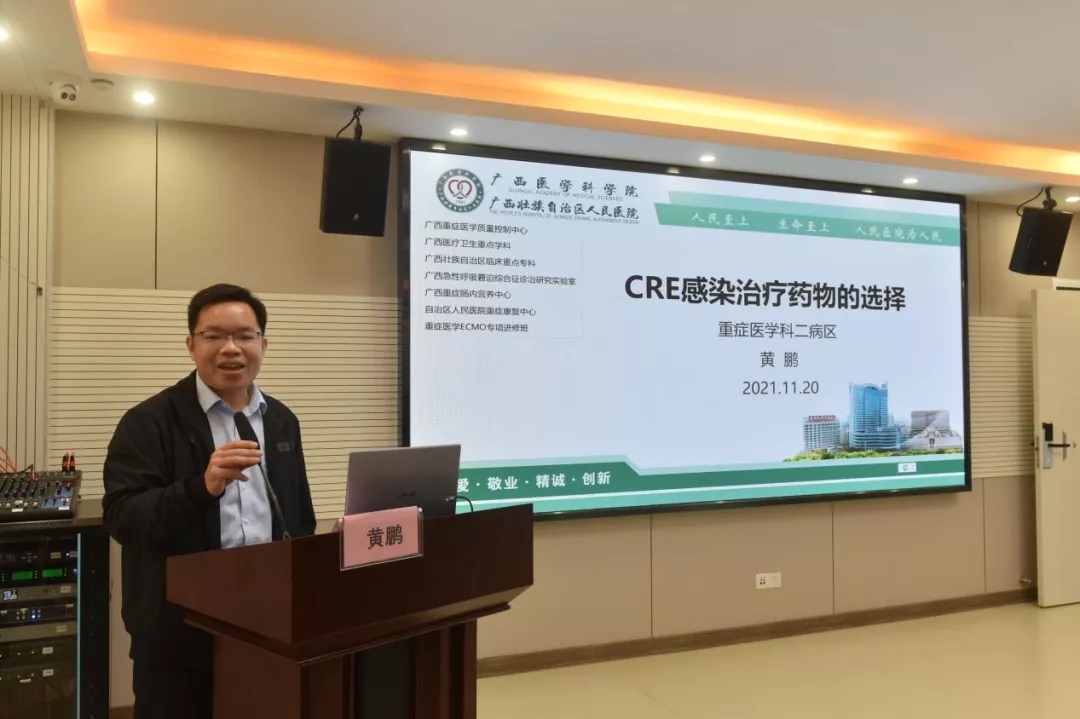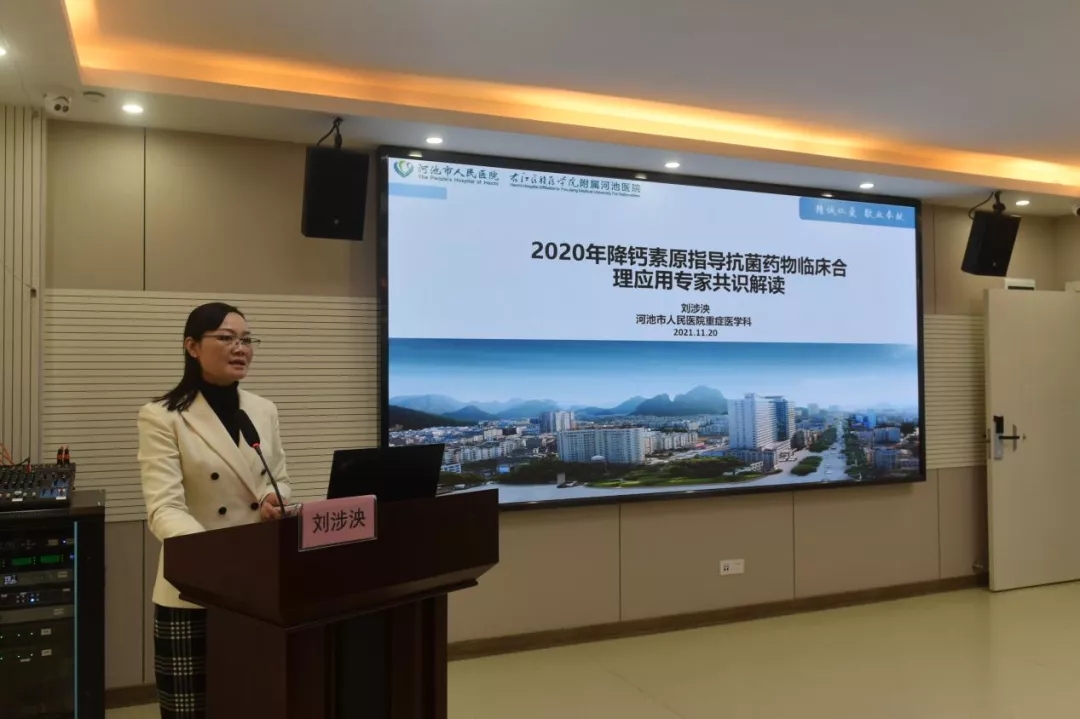 河池市人民医院副院长韦喆简单介绍了医院基本情况,并指出,重症医学质控中心在突发公共卫生事件及急危重症病人的综合救治中,发挥着中流砥柱的作用。她表示,目前全球细菌耐药形势日益严重,希望医院以及各中心单位的委员们能进一步规范ICU中抗菌药物的合理应用,提高感染性疾病的诊治水平,更好地为桂西北老百姓服务。