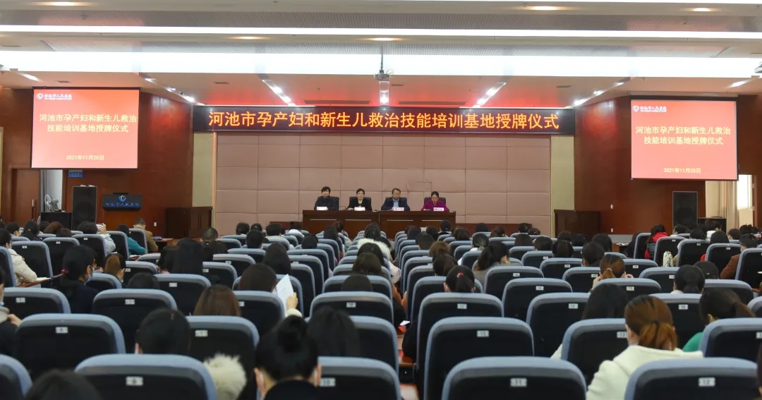 11月25日上午,河池市人民医院在门诊综合楼23楼举办全市孕产妇和新生儿急救技能培训基地授牌仪式暨2021年孕产期保健助产技术资格考试人员的培训班。河池市卫生健康委欧乃坚副主任出席,河池市人民医院领导班子、中层干部以及各县(区)2021年河池市孕产期保健助产技术资格考试人共同参与。仪式由医院副院长韦喆主持。