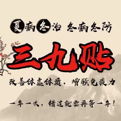 在民间,素有“三九贴一冬.来年无病痛”的俗语。 在冬至后的第一个8天我们称一九,第二个8天称二九,第三个8天称三九,在这些时辰上,我们应用中草药制剂,施于皮肤、孔窍、腧穴及病变局部等部位,可以起到扶正祛邪,防病治病,调整脏腑阴阳。三九贴敷主要是用于调养体质或者缓解病症的,起到调养身体的作用。“三九贴”也是对我们夏天开展的“三伏贴”的一个加强和巩固,三九三伏,相辅相成,防治“冬病”。