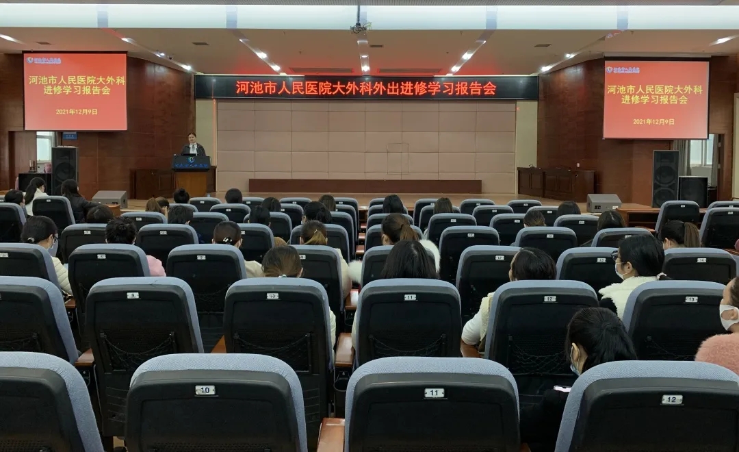 为提升护理综合服务能力和水平,12月9日,河池市人民医院大外科在门诊综合楼23楼会议室举办外科系统护理人员外出进修学习报告会,会议由创伤手外科黄娟娟护士长主持,医院大外科全体护理人员参加。