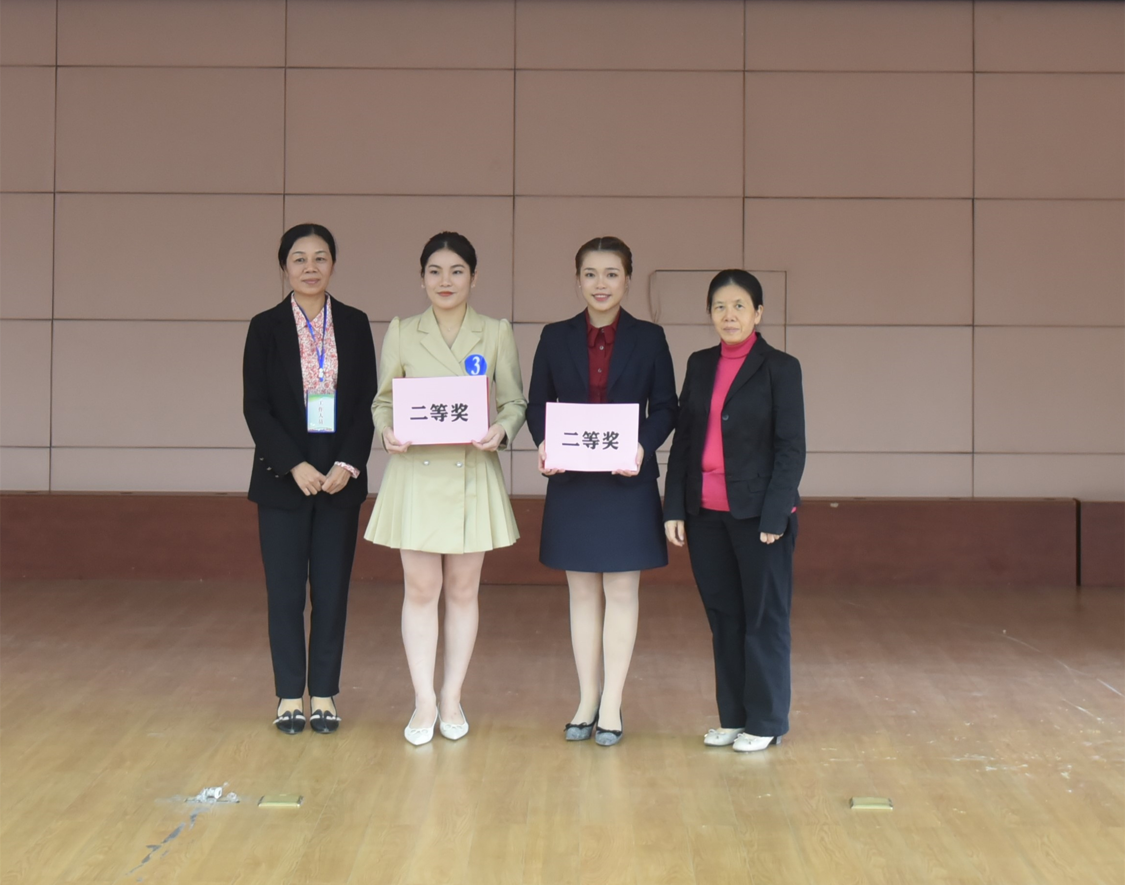 获二等奖选手与评委合影