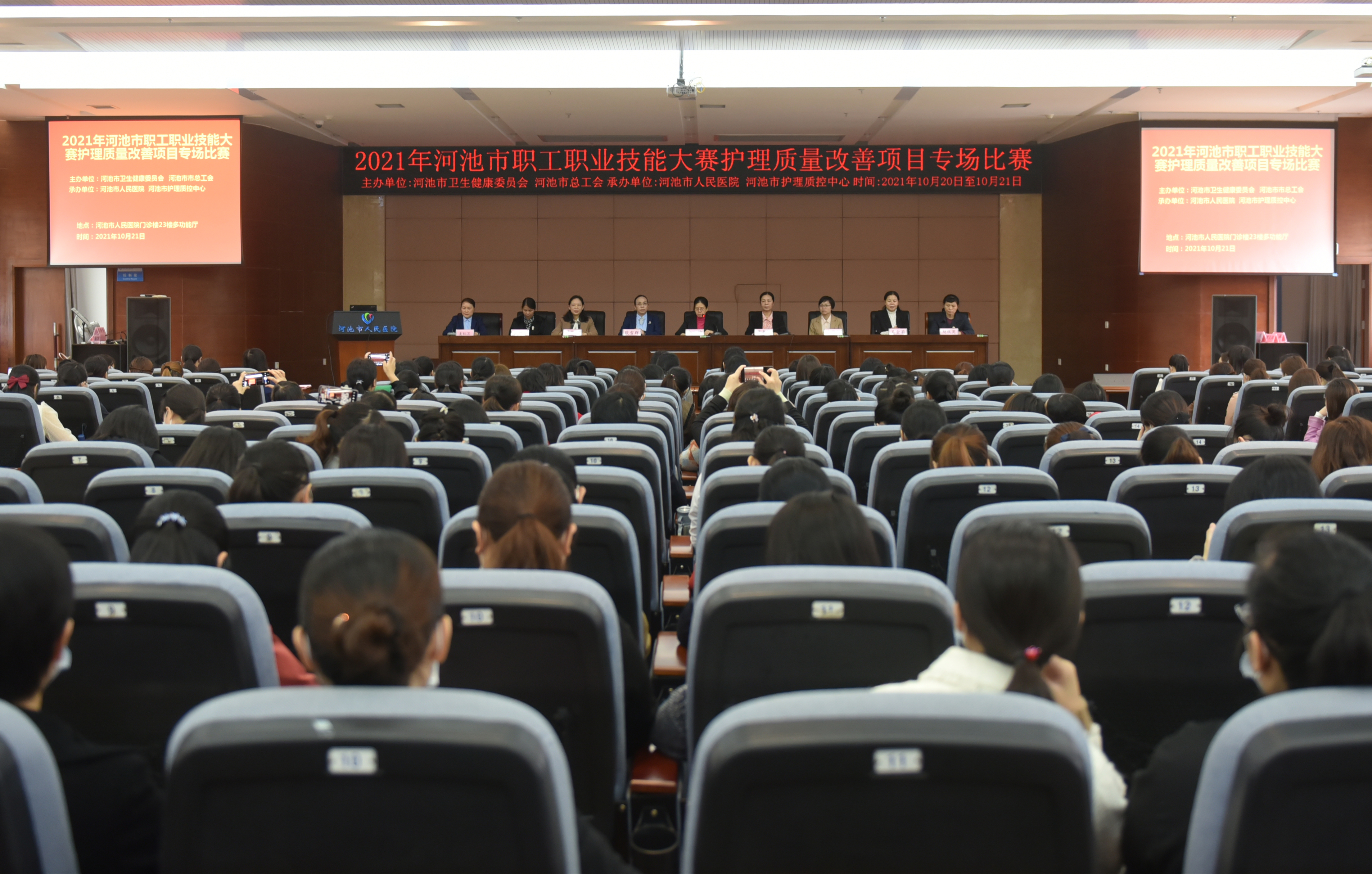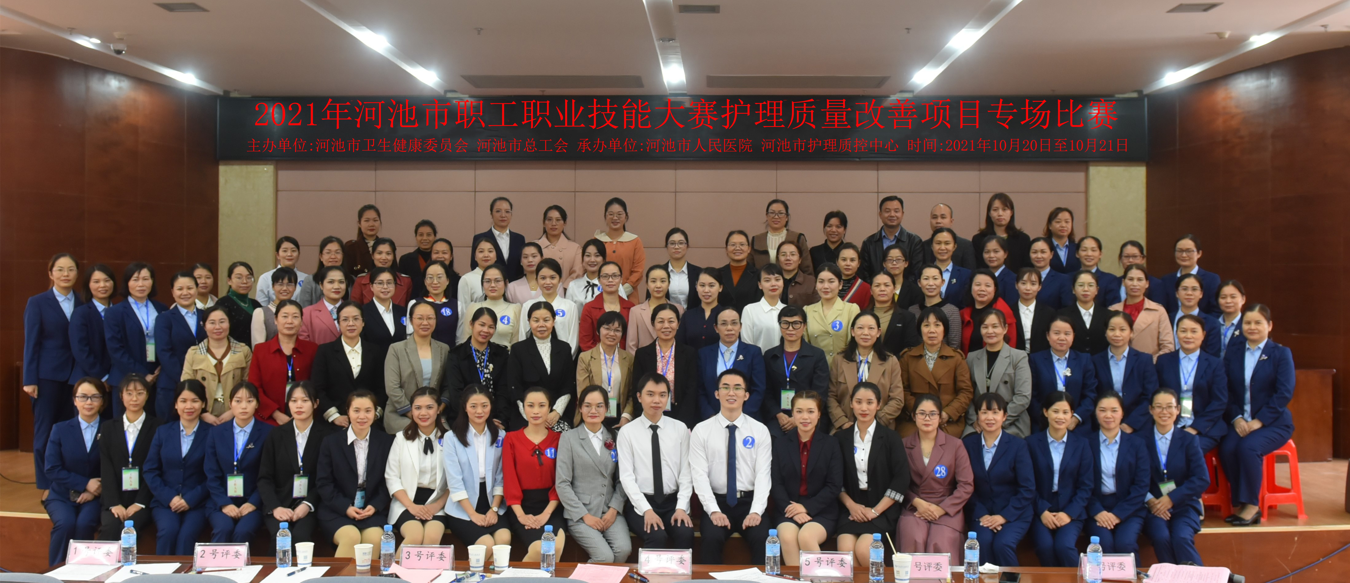 2021年10月20日至10月21日,河池市人民医院成功举办“2021年河池市职工职业技能大赛护理质量改善项目专场比赛”。本次比赛由河池市卫生健康委员会、河池市总工会主办,河池市人民医院、河池市护理质控中心承办,16家医疗机构共29位参赛选手参加。