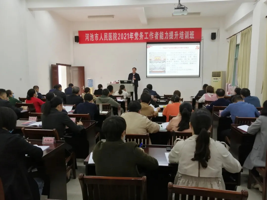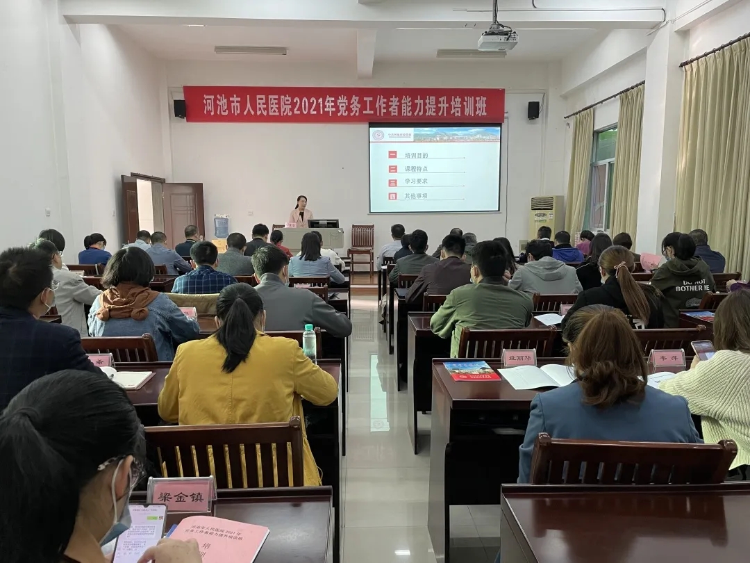 为适应新时期党建工作的需要,加强基层党组织建设,全面提升医院党务干部的能力素质和业务水平,10月26日至10月29日,医院党委分2批次在河池市委党校举办2021年党务工作者能力提升培训班。全院共计100余名党务干部参加了此次培训。