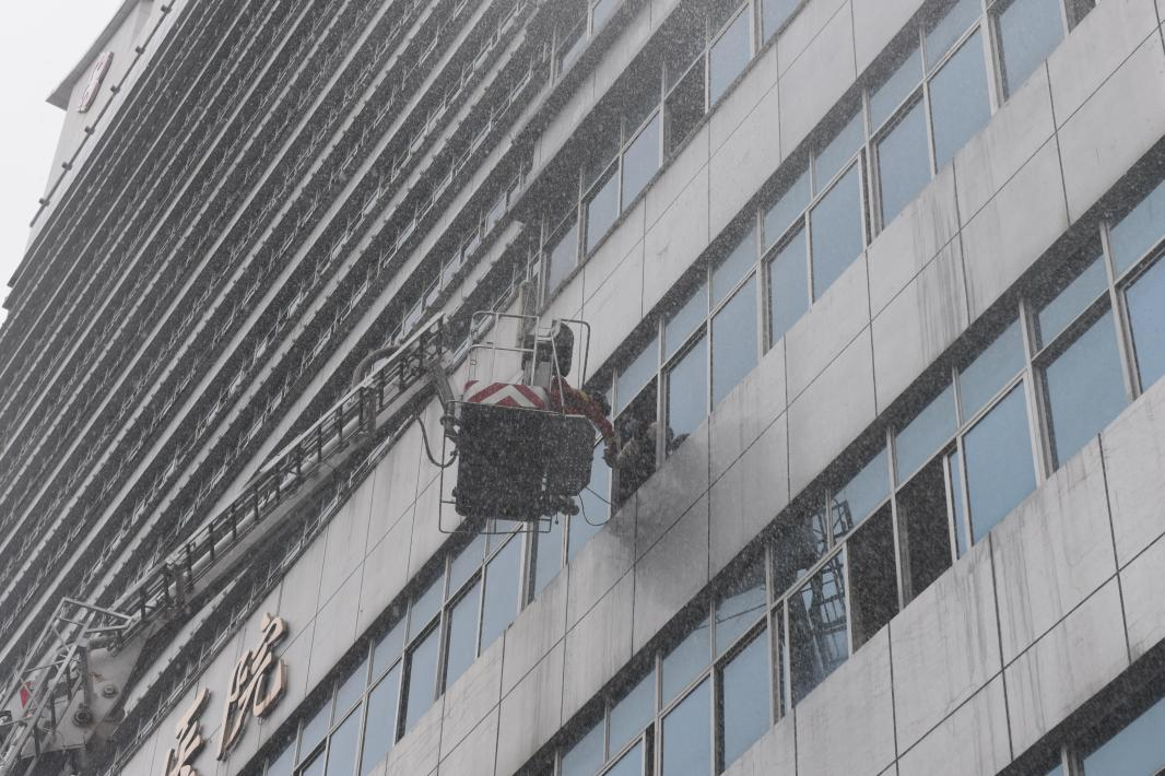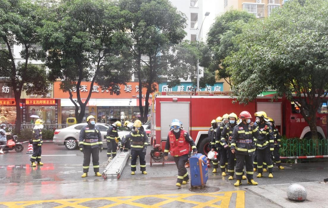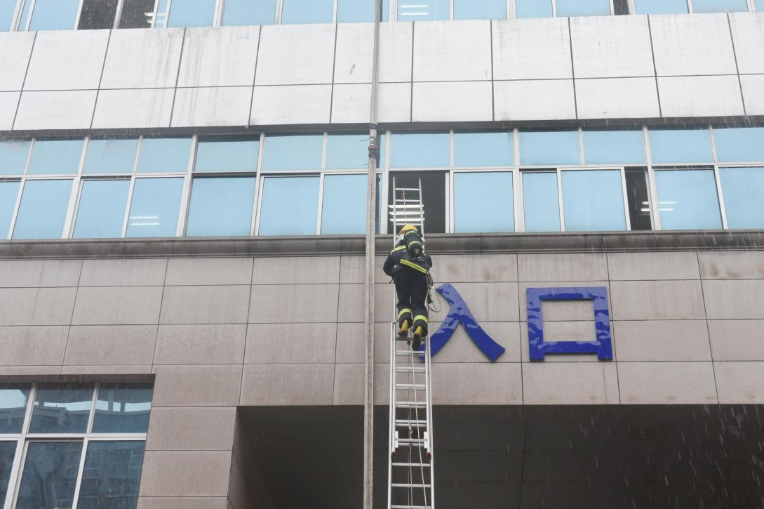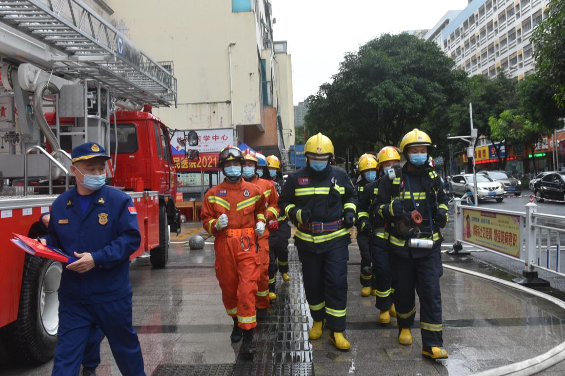 随着一系列明确的指令通过对讲机迅速发出,消防车迅速赶到现场,消防队员全副武装进入楼内搜救被困人员,消防车升起云梯救助了4名被困人员和3名行动不便的患者,高压水流持续喷向高空压制火势。在消防队员指导下,大部分人员捂住口鼻,低头、弯腰按照预定撤离路线有序撤离,医护人员和消防员共同配合通过平车、轮椅将重症病人安全转移。