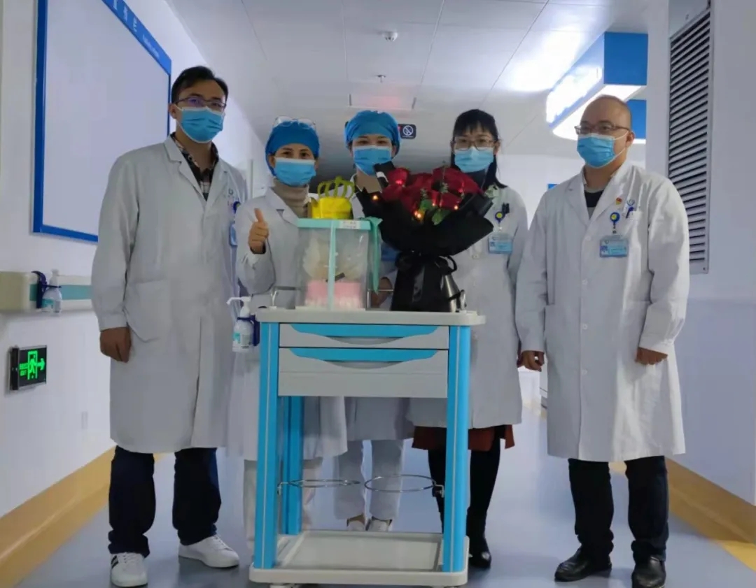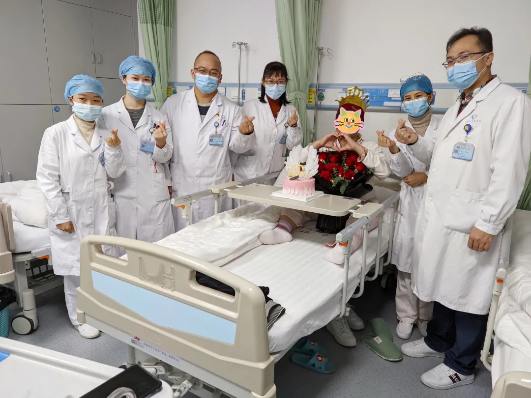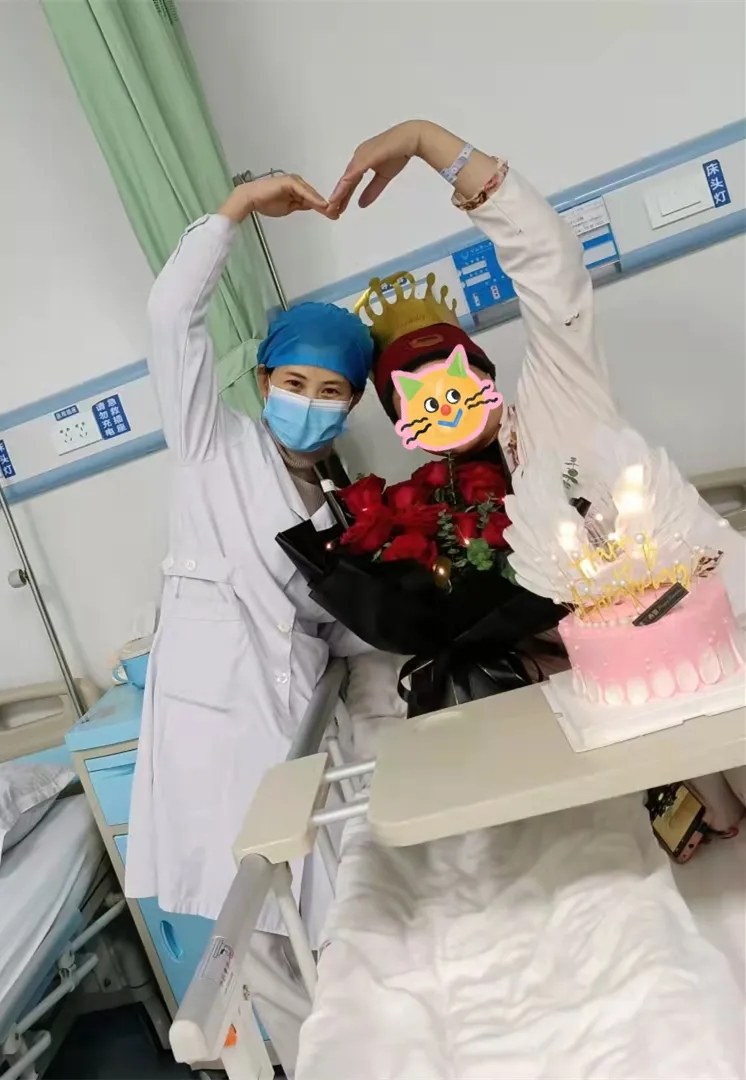 下午,科室医护人员推着蛋糕车走进黄阿姨的病房,吴燕副主任献上鲜花,朱金玉护士长为寿星戴上生日帽,大家唱起生日歌,为黄阿姨送上祝福语。看到这么多的医护人员为自己庆祝生日,黄阿姨含着激动的泪花回应道:“谢谢大家!谢谢大家的祝福,今年的生日我将终生难忘。”