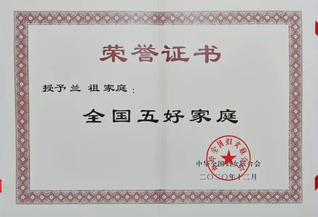 兰祖家庭荣获“第十二届全国五好家庭”称号