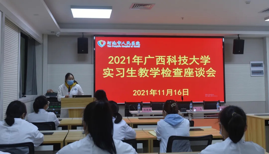 11月16日上午,广西科技大学第一临床医学院(第一附属医院)院长覃天一行4人到河池市人民医院开展毕业生实习教学检查工作,院领导班子、科教科全体人员、带教老师代表出席会议并陪同检查。会议由河池市人民医院副院长韦喆主持。
