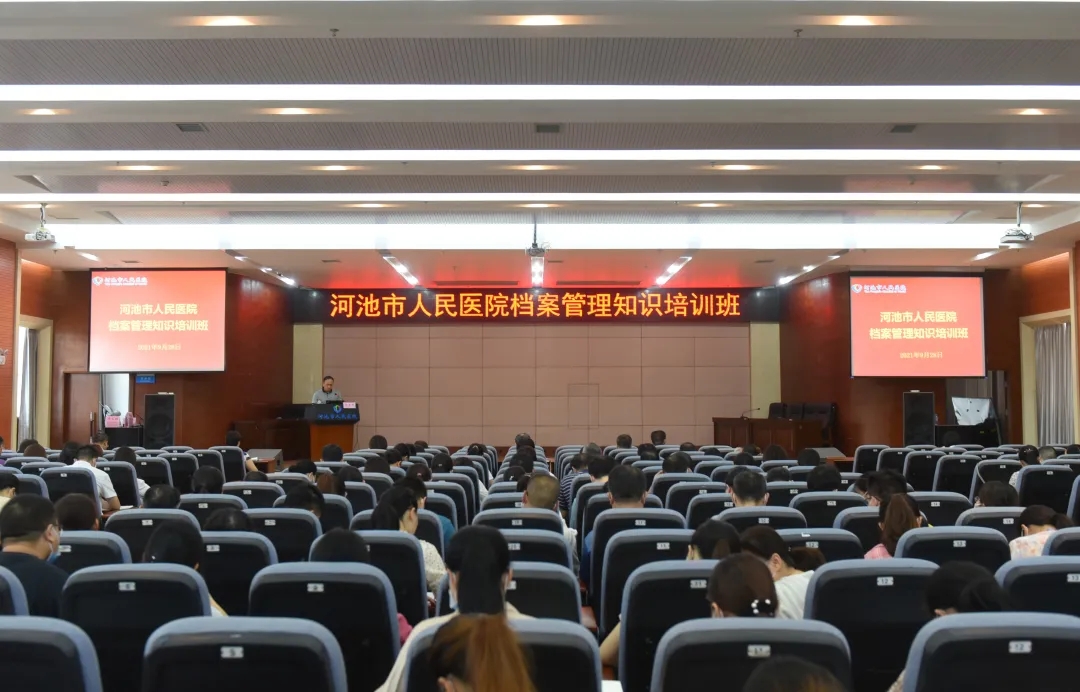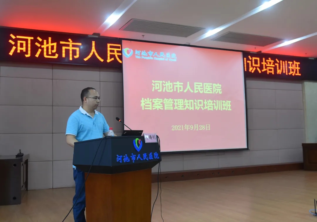 为不断规范和提升医院档案管理水平,9月28日,河池市人民医院在门诊综合楼23楼会议室举办医院档案管理业务培训班,全院中层干部、行政职能科室全体人员、全院各临床医技科室相关人员共400余人参加。培训班由余乐周副院长主持。