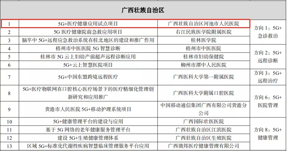 近日,工业和信息化部、国家卫生健康委员会联合发布5G+医疗健康应用试点项目名单,河池市人民医院申报的“5G+急诊救治”成功获评“5G+医疗健康应用试点项目”国家级试点项目,成为全市唯一一家获批试点项目的医疗机构,为医院高质量发展注入了新动力。