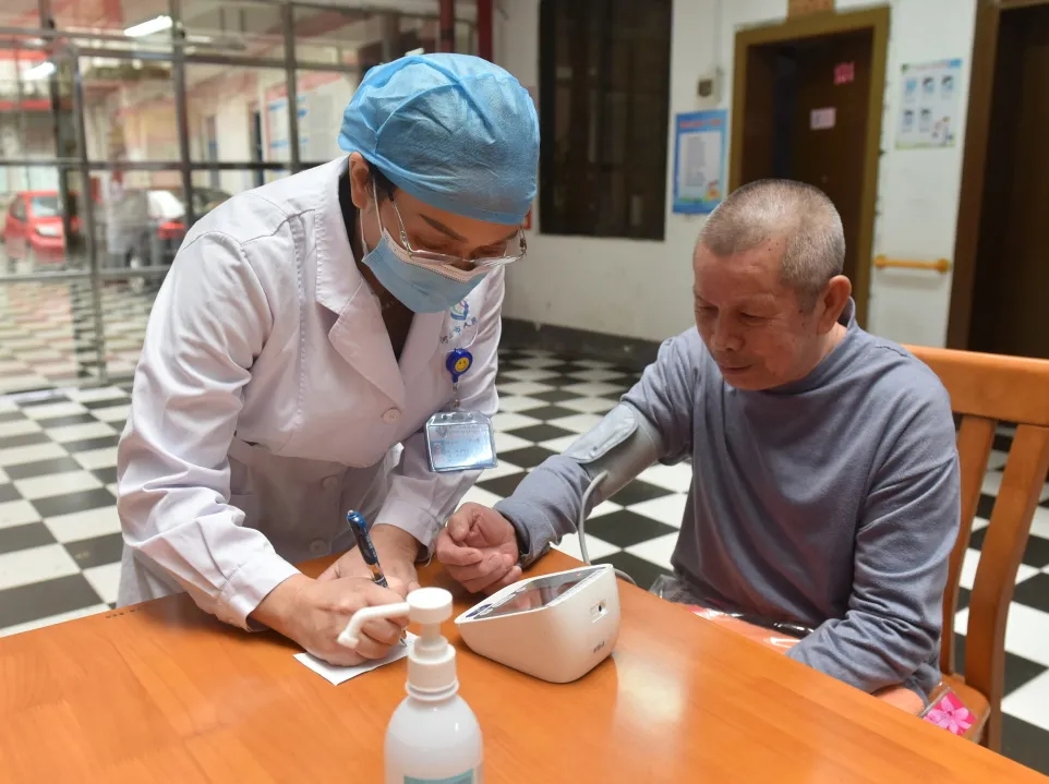 活动中,大家为福利院老人们 送去节日问候和慰问品。随后,医护人员耐心细致地为老人们进行健康宣教,免费测量血压、血糖,了解他们身体状况和生活情况等。同时,医护人员对福利院工作人员进行急救知识培训、心肺复苏操作示范,并指导福利院工作人员进行演练,以便更好地照顾老人们。