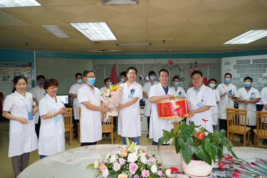 节日当天,医院领导班子成员以及部分行政职能科室负责人深入全院各临床、医技科室慰问医务人员,为医院医务工作者们送上精心准备的蛋糕和鲜花,向他们致以节日的祝福和问候。与他们交流谈心,充分肯定他们的工作成绩,感谢他们常年坚守在医疗一线所付出的辛劳。