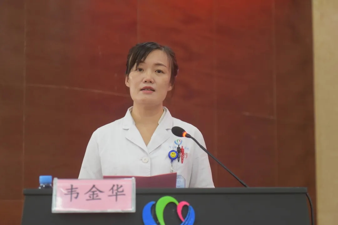 韦义甜书记宣读医师节表彰决定,院领导班子给获奖的集体及个人颁发荣誉证书。优秀医疗团队代表冉景兵主任、优秀科主任代表潘琦文主任分别发表了获奖感言。参加工作超35年的医师代表给2021年新入职医师代表授予听诊器。接着,全体与会人员重温了《中国医师宣言》。