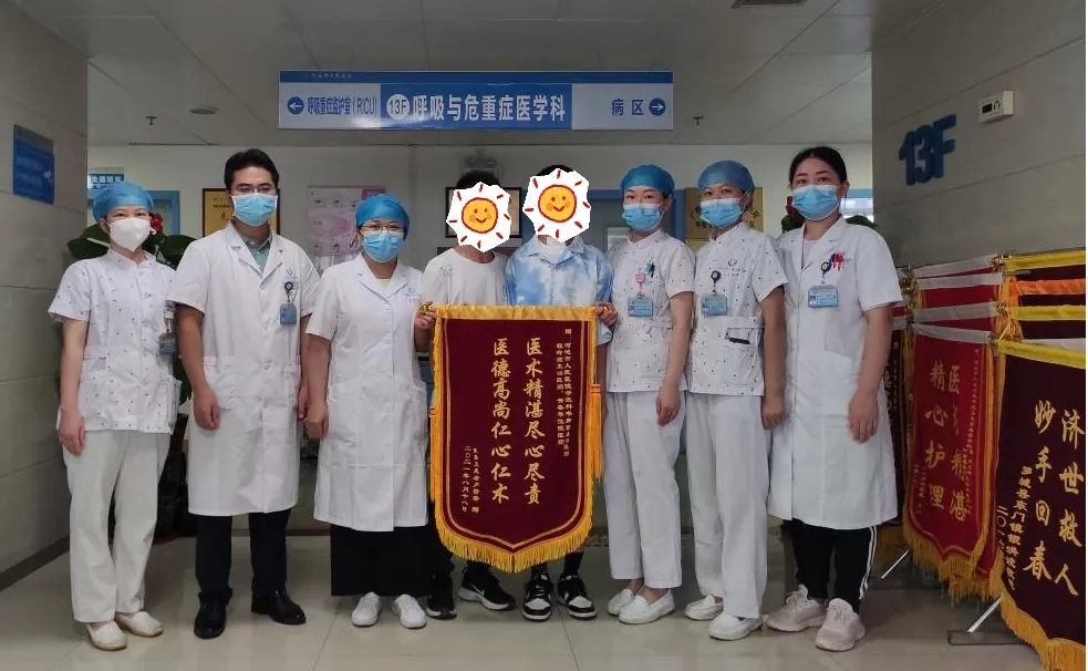 小安父亲给呼吸内科医护团队赠送锦旗并合照
