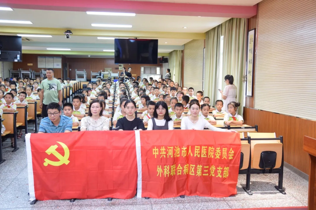当天下午,在赵亮主任及韦琴护士长的带领下,“医路童行”志愿宣传队到金城江区第五小学,开展口腔卫生专题知识讲座,在与孩子们的互动中,增强了孩子对牙齿的爱护意识。