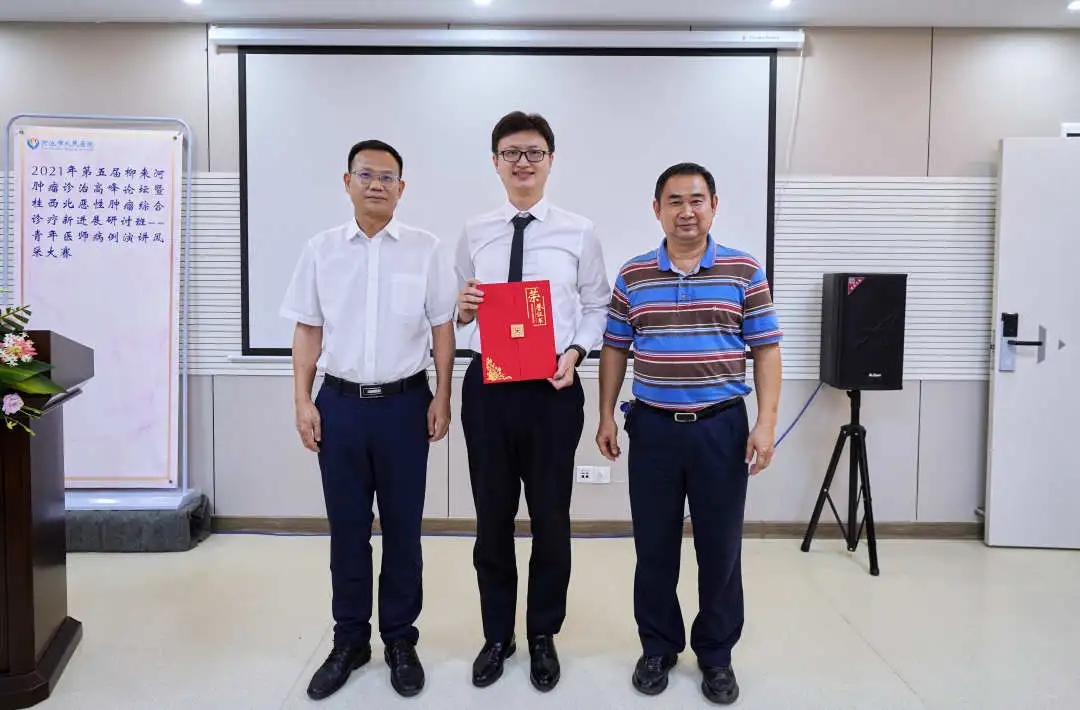 比赛分为演讲环节及提问环节,邀请了胡晓桦教授、黄海欣教授、蒿艳蓉教授等26名专业人员担任评委,确保比赛的专业和公平公正。台上,比赛选手们熟练、自信地作精彩病例演示;台下,评委严格地作考核评分,观众认真地聆听演示讲解。比赛过程中,选手们不仅需要扎实的理论功底和丰富的临床经验,还需要保持十分的冷静、自信地演示。经过激烈角逐,柳州市人民医院黄成荣获第一名,柳州市中医院黄萍、柳州市工人医院庞清清荣获第二名,柳州市工人医院李金砖、我院牙韩达、柳州市工人医院陈锡山、广西科技大学第二附属医院杨小梅、河池市第一人民医院王翀荣获第三名。此次比赛为柳来河广大肿瘤科青年医师提供了展示自己风采与交流的舞台,提高了青年医师的诊疗水平,促进了青年医师的成长。
