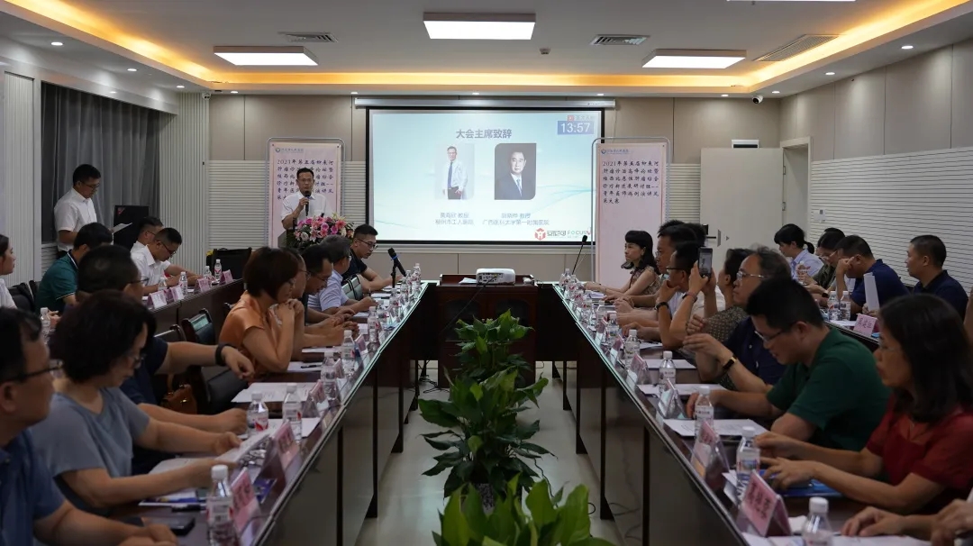7月16日下午,以“当小分子抗血管生成碰上免疫”为主题的青年医师病例演讲风采比赛在教学楼5楼举行,来自柳州市工人医院、柳州市人民医院、柳州市中医医院、柳州市柳铁中心医院、广西科技大学第一附属医院、广西科技大学第二附属医院、来宾市人民医院、我院、河池市第一人民医院、宜州区人民医院共10个参赛单位、14名参赛选手参加比赛。大会名誉主席柳州市工人医院院长黄海欣教授、广西医科大学第一附属医院肿瘤内科主任胡晓桦教授为比赛致辞,希望选手们能赛出风采,赛出水平。