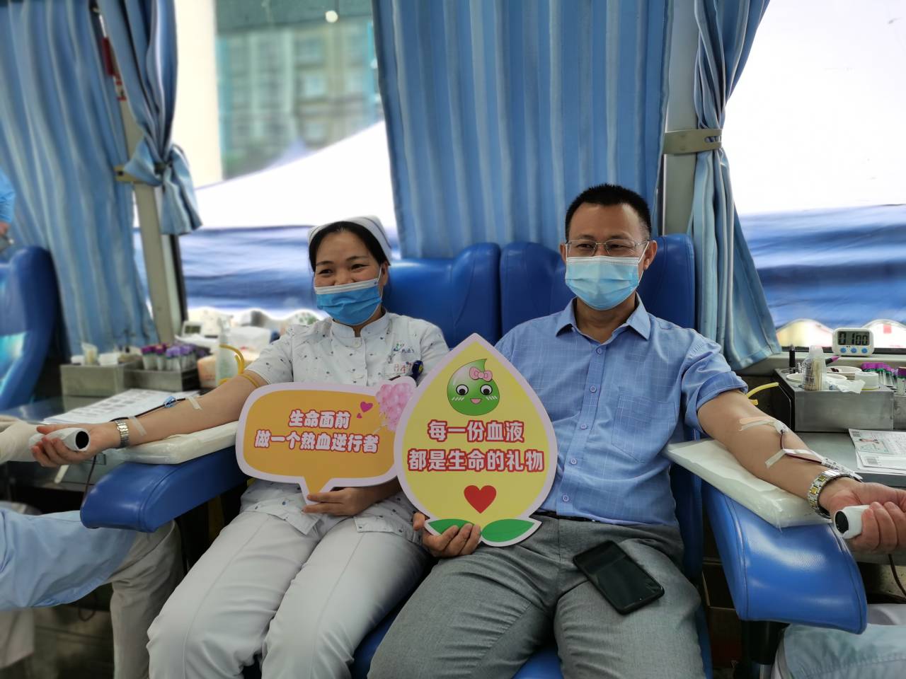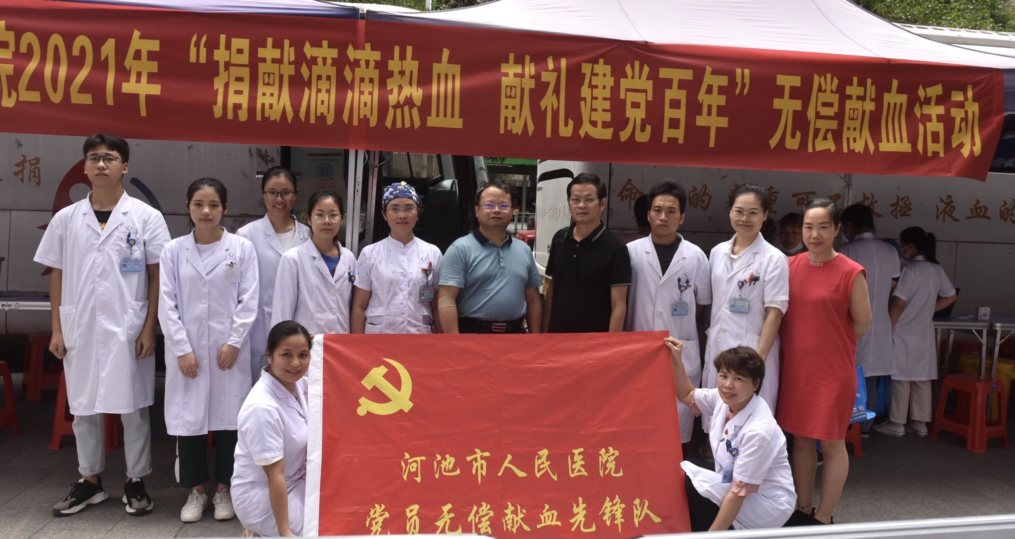 6月17日,我院携手河池市中心血站在我院门诊综合楼大楼前开展2021年“捐献滴滴热血,献礼建党百年”无偿献血活动。