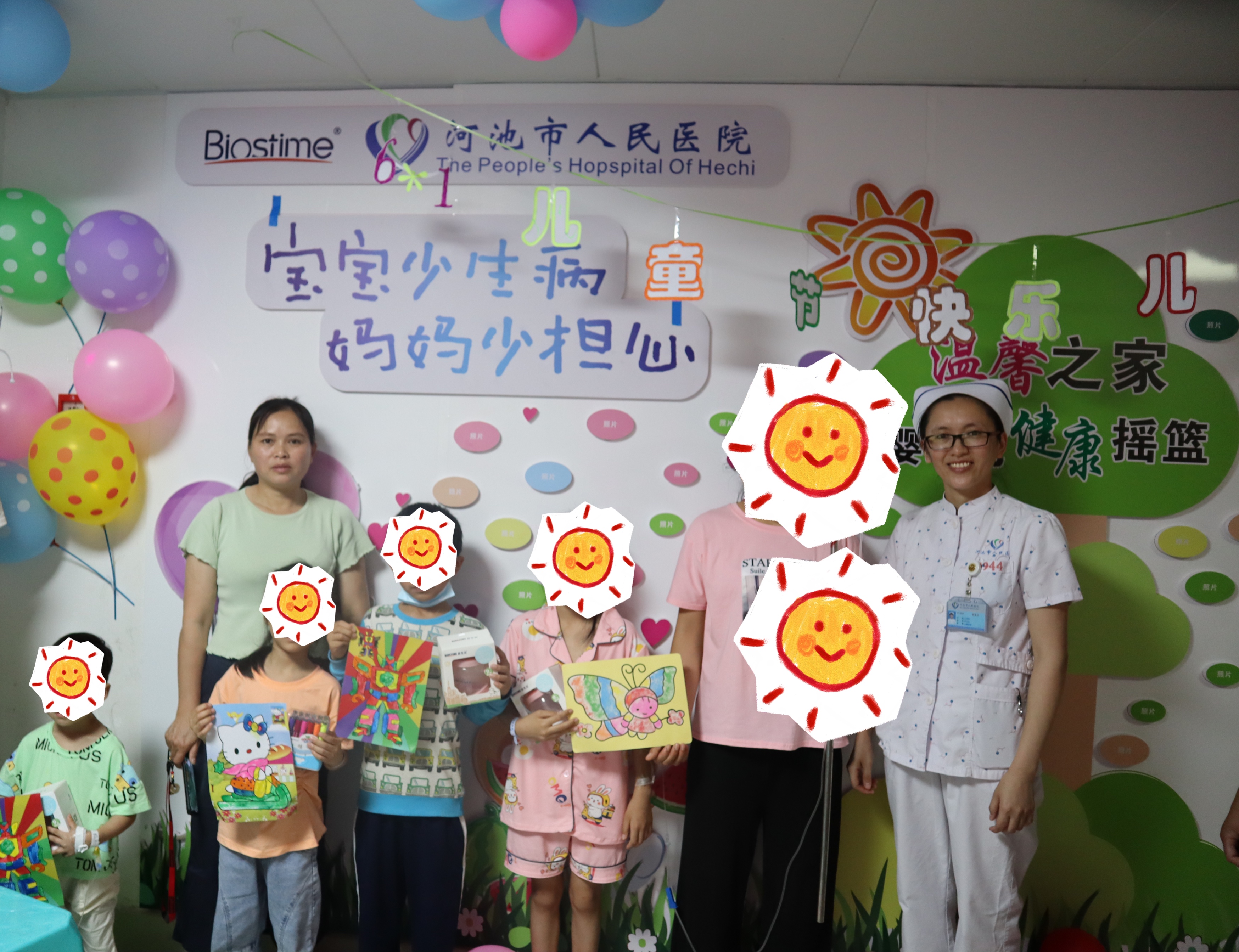 活动中,韦文正书记祝所有小朋友节日快乐,随后韦喆副院长为孩子们送上节日蛋糕,医院领导与科室医护人员也为在病房里的小朋友们准备了精美的小礼物。小朋友们的脸上都洋溢着幸福快乐的笑容。