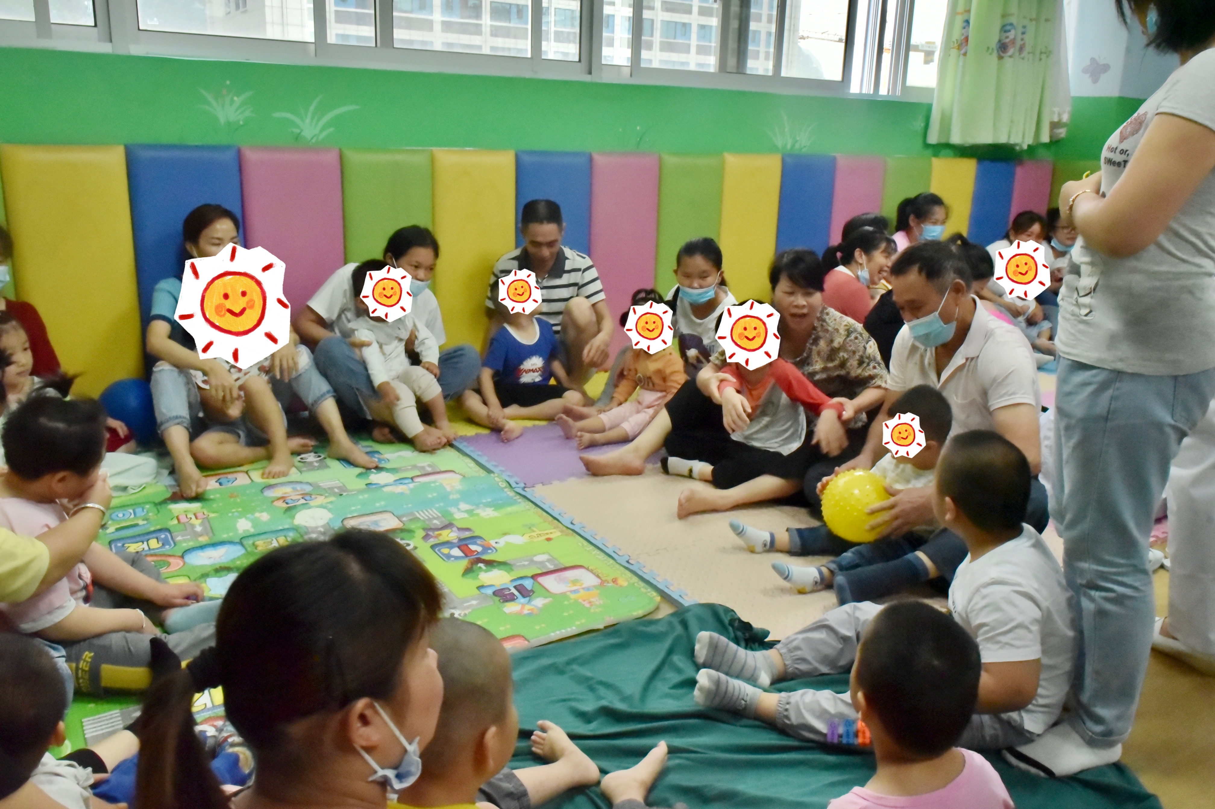 在儿童康复科,孩子们分成了两队参与了儿康治疗师精心设计的“袋鼠跳跳跳”、“翻滚吧,宝宝”等亲子互动游戏。在儿童康复治疗师和家长们的协助下,小朋友们积极踊跃的参与游戏,带着开心的笑容完成了一个个挑战。
