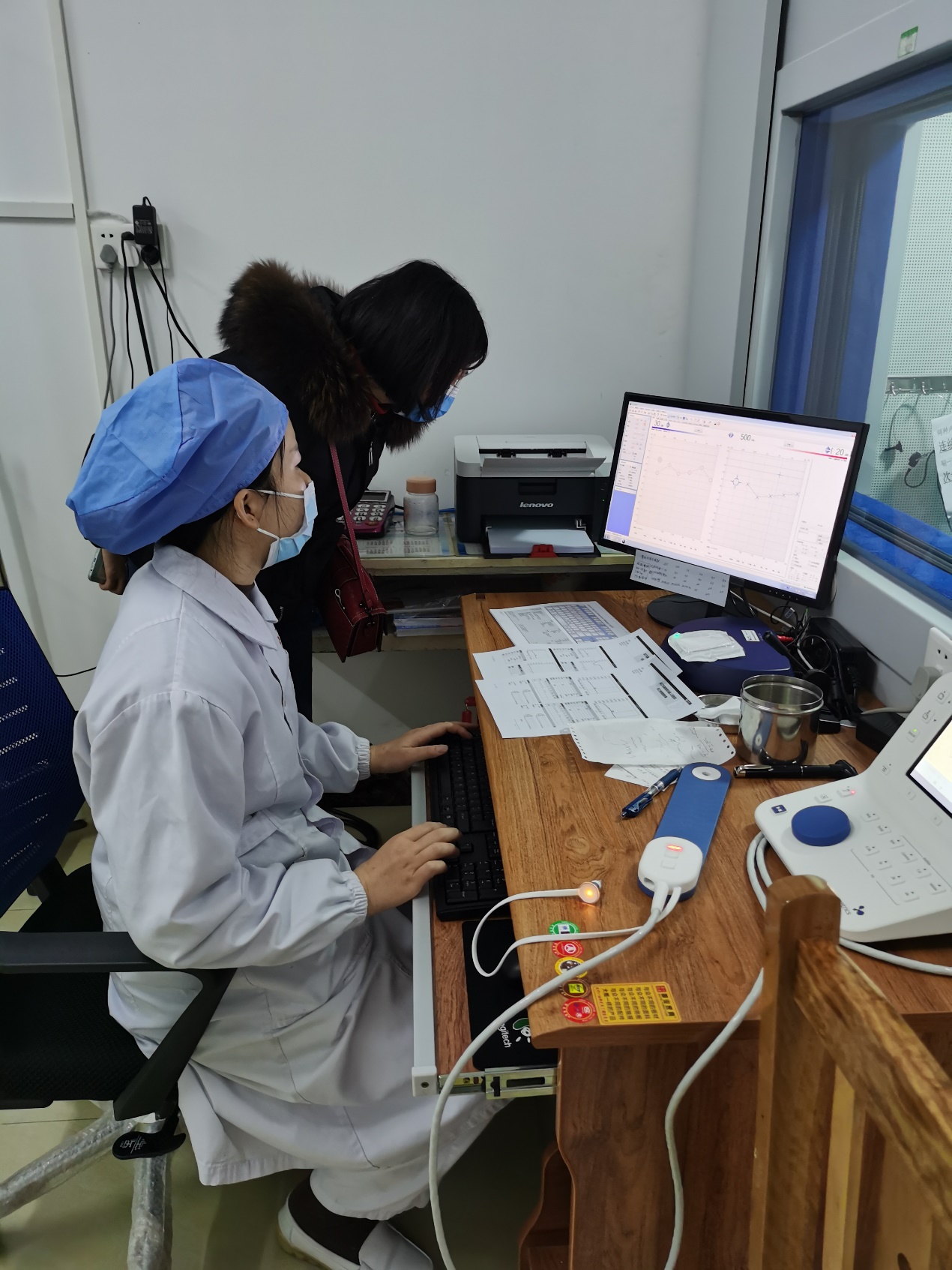 听力检测技术人员为环江县人民医院五官科进行听力测试操作指导