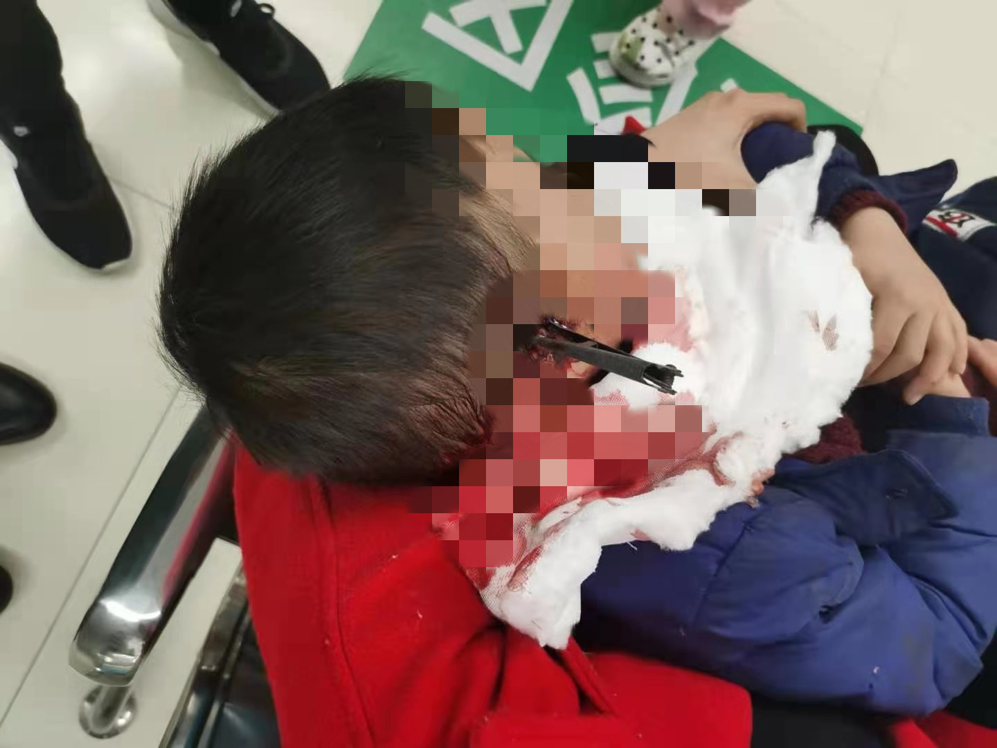 5岁男童小明 (化名)被剪刀刺入头部,经我院神经外科紧急抢救后化险为夷。