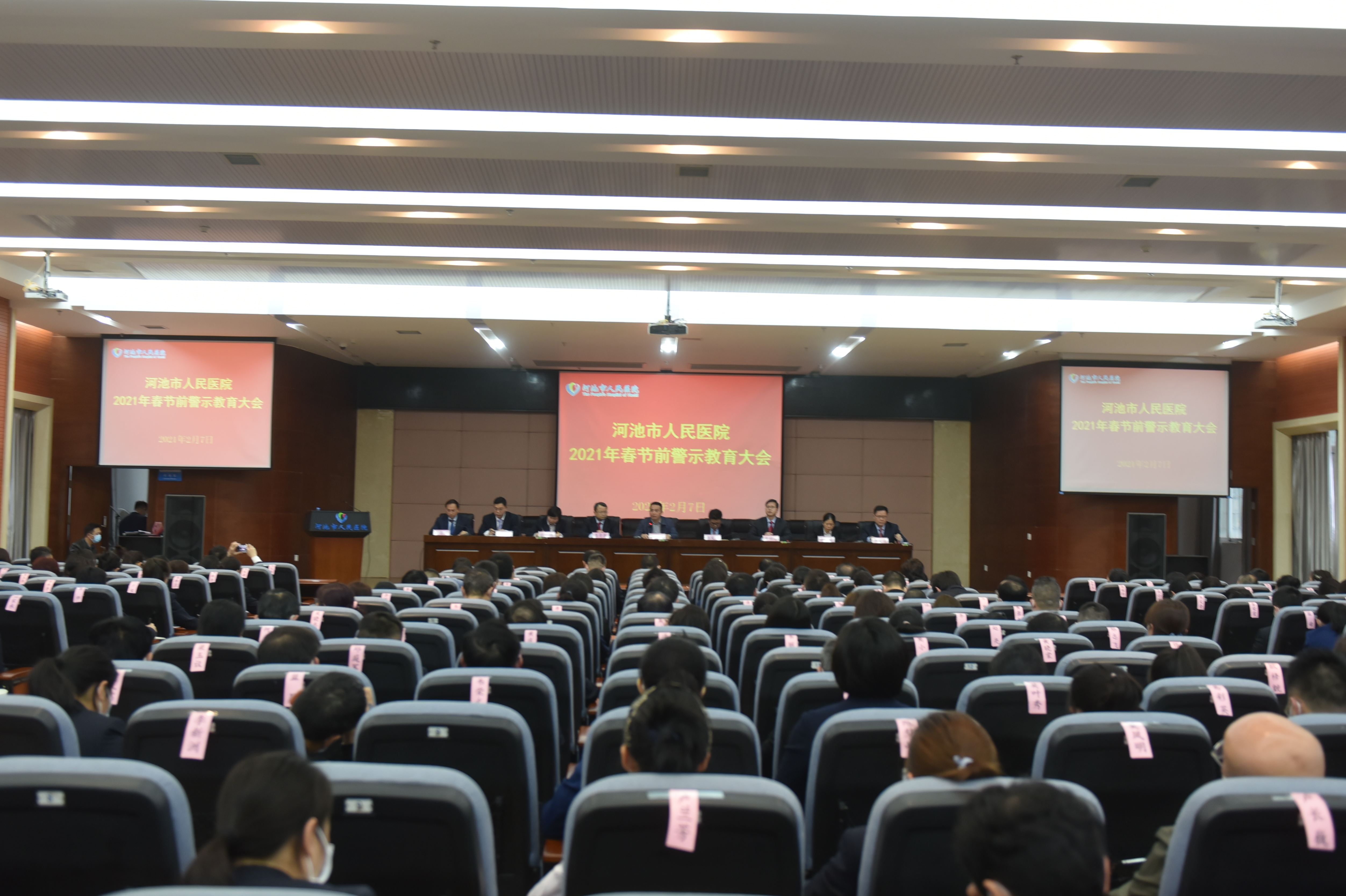 2月7日,我院在门诊综合楼23楼多功能厅召开春节前警示教育暨疫情防控、安全生产工作部署会,市纪委监委驻市卫健委纪检监察组组长欧红明在会上作廉政讲话,院领导班子及全院中层干部约300人参会。