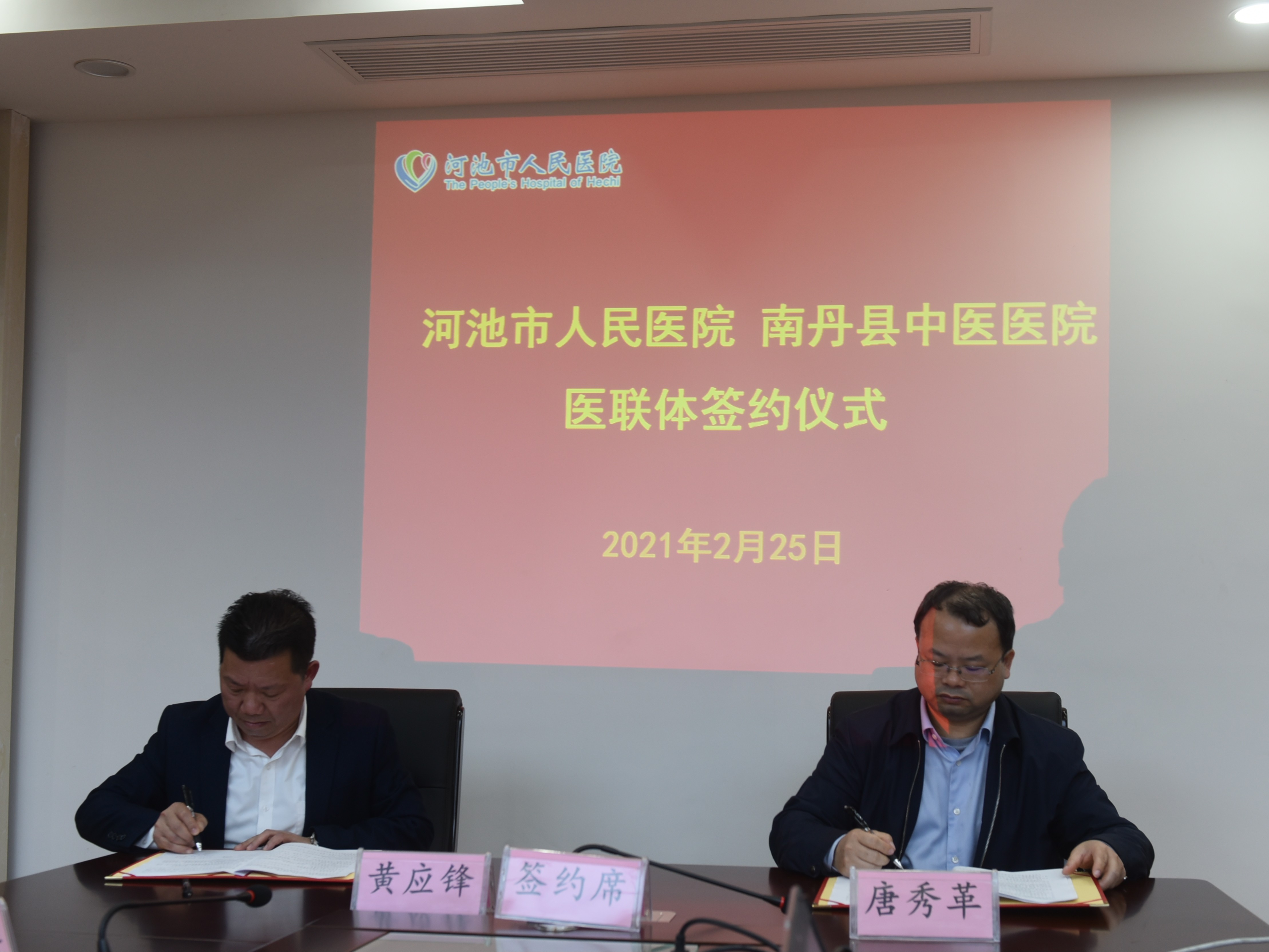 随后,双方就医联体工作展开思索与探讨,发表各自意见和建议,我院专家表示将积极对接各自帮扶科室,根据南丹县中医医院各科室的实际情况提供帮带工作,给予技术指导和支持,为医联体建设提供强有力的保障。最后,我院唐秀革院长与南丹县中医医院黄应锋院长进行医联体签约。