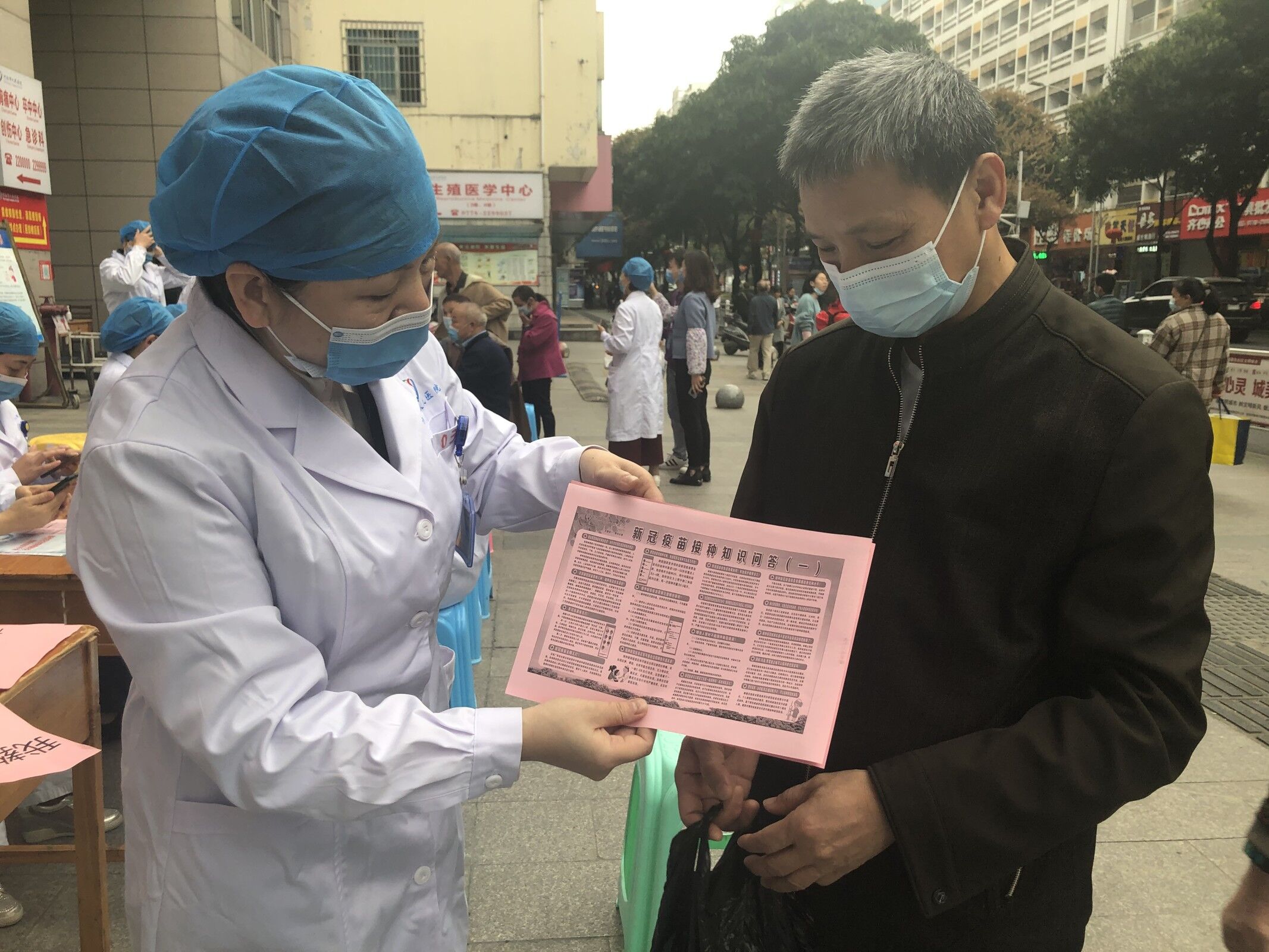 2月25日上午,我院医务科、预防保健科在医院门诊综合大楼前开展了“常态化新冠疫情防控及重点人群新冠疫苗接种”宣传义诊活动。