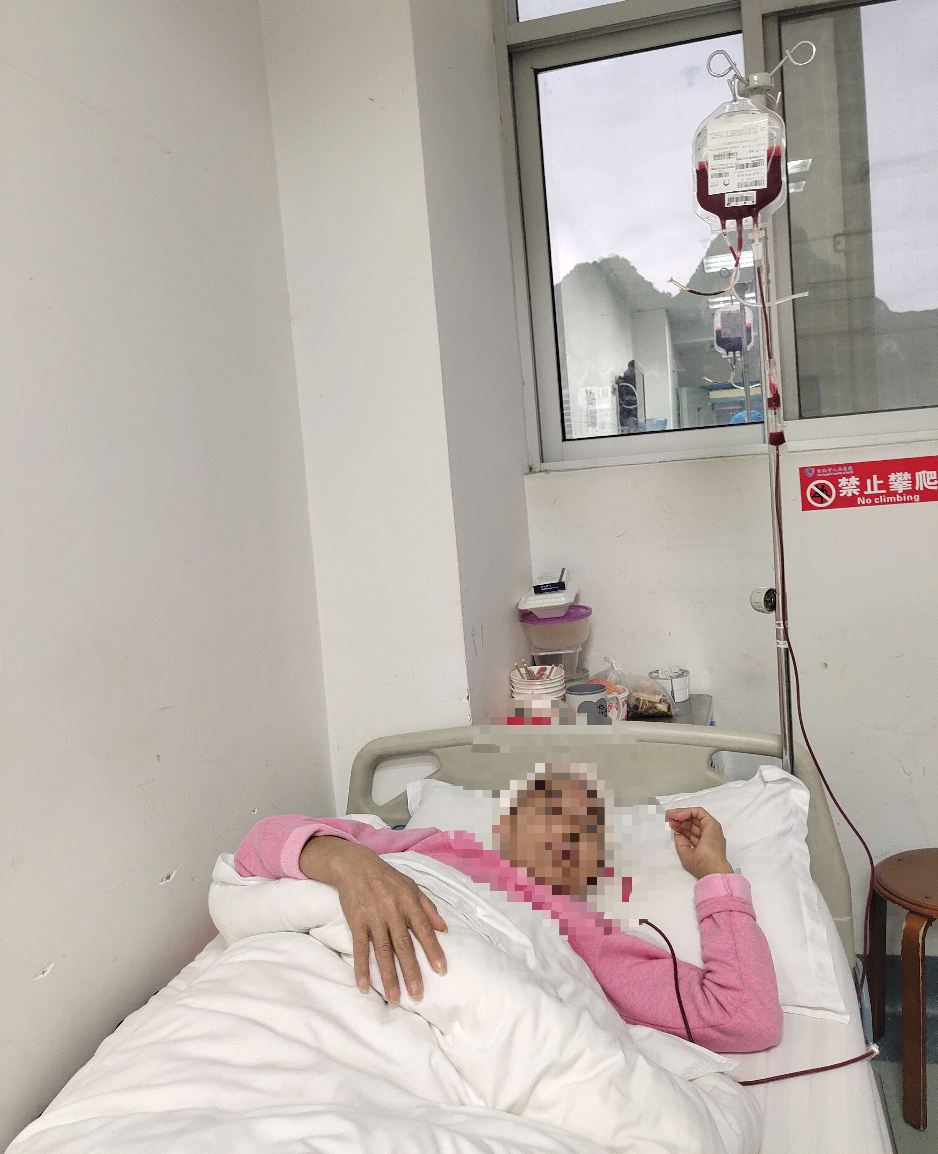 韦阿姨正在输血